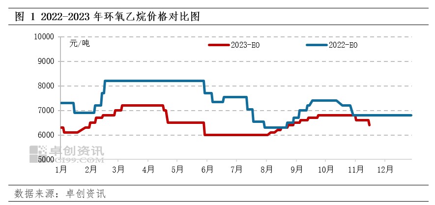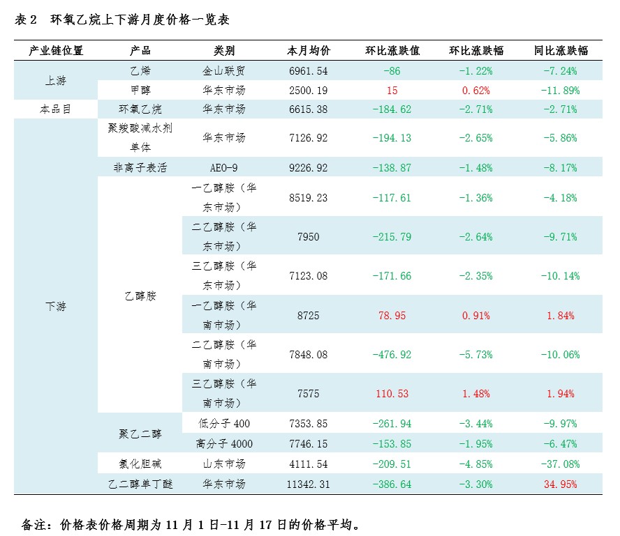 11月以来华东环氧乙烷下跌趋势,同环比均下跌