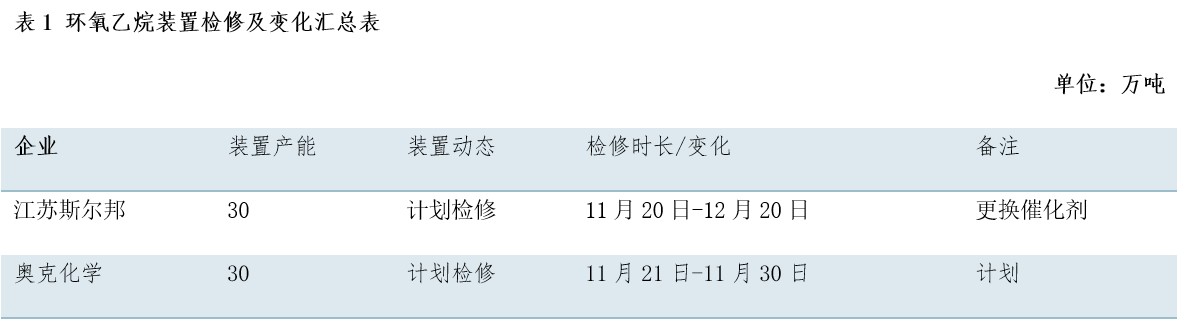 环氧乙烷整体供应预期有所减少,预计下周检修